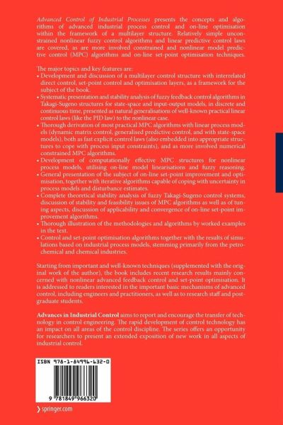 Major topics and key features include: Derivation of practical MPC algorithms with linear process models; Development of computationally effective MPC structures for nonlinear process models, utilising on-line model linearisations and fuzzy reasoning; General presentation of the subject of on-line set-point improvement and optimisation; Complete theoretical stability analysis of fuzzy Takagi-Sugeno control systems; Illustration of the methodologies and algorithms by worked examples in the text and by results of simulations based on industrial process models.