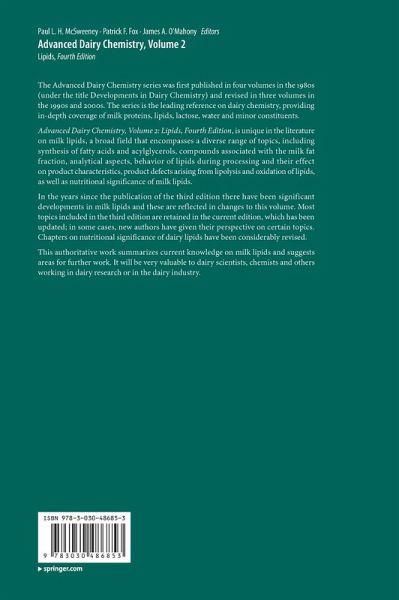 The Advanced Dairy Chemistry series was first published in four volumes in the 1980s (under the title Developments in Dairy Chemistry) and revised in three volumes in the 1990s and 2000s. The series is the leading reference on dairy chemistry, providing in-depth coverage of milk proteins, lipids, lactose, water and minor constituents.