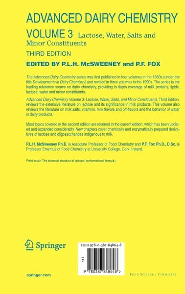 Advanced Dairy Chemistry Volume 3: Lactose, Water, Salts, and Minor Constituents, Third Edition, reviews the extensive literature on lactose and its significance in milk products. This volume also reviews the literature on milk salts, vitamins, milk flavors and off-flavors and the behaviour of water in dairy products.