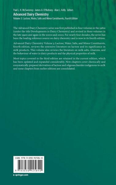 The Advanced Dairy Chemistry series was first published in four volumes in the 1980s (under the title Developments in Dairy Chemistry) and revised in three volumes in the late 1990s and again in the 2000s and 2010s. For nearly four decades, the series has been the leading reference source on dairy chemistry and is now in its fourth edition.