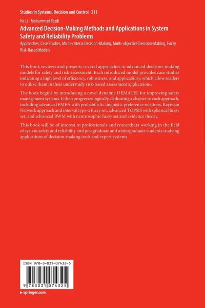 This book reviews and presents several approaches to advanced decision-making models for safety and risk assessment. Each introduced model provides case studies indicating a high level of efficiency, robustness, and applicability, which allow readers to utilize them in their understudy risk-based assessment applications.