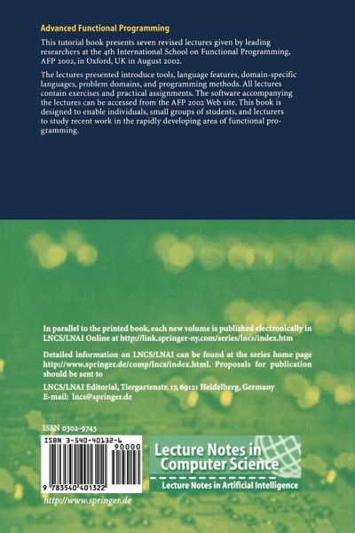 This volume contains the notes of the lectures given at the Fourth Inter- tionalSchoolonAdvanced FunctionalProgramming,heldAugust19 24,2002,at St. Anne s College in Oxford, UK. This School was preceded by earlier ones in B? astad (1995, Sweden, LNCS 925),Olympia,WA (1996,USA, LNCS 1129),andBraga(1998,Portugal,LNCS 1608). The goal of this series of schools is to make recent developments in the area of functional programming widely available. The notes are published to enable individuals, small groups of students, and lecturers to study recent work in the rapidly developing area of functional programming. ThelecturesinthisSchoolintroducetools,languagefeatures,domain-speci?c languages, problem domains, or programming methods. All lectures are - companied by software, and all lectures contain exercises and practical assi- ments. Most of the resources can be downloaded via the website of the School: TheLectures Richard Bird and Jeremy Gibbons show how to construct a program for ari- meticcoding.Theyusethetheoryoffoldsandunfoldstodevelopbothaprogram forarithmeticcodinganddecoding,andaproofofcorrectness.Theelegantresult shows that using theory can make a di?cult proof digestible. Manuel Chakravarty and Gabriele Keller tackle the performance problem of Haskell s standard arrays. They introduce an array library with which arr- centric algorithms can be coded elegantly, which has very good performance. Koen Claessen and Colin Runciman show how to use QuickCheck to specify programpropertiesandtotestthesepropertiesonfunctionalprograms,andhow to use Hat to trace computations. The combination of the two tools which can be used to trace computations of unexpected results is a powerful debugging tool. MatthiasFelleisenexplainshowtodevelopinteractiveWebprogramsinfu- tional Scheme with continuations, using DrScheme and its built-in Web server.