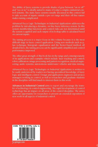 The tuning process is a major focus in this volume because it is the most difficult stage in fuzzy control application. Using new methods such as µ-law technique, histogram equalization and the Bezier-based method, all detailed here, the tuning process can be significantly simplified and control performance improved.