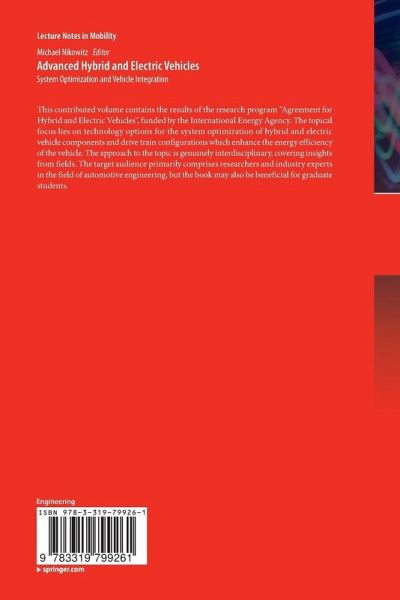 This contributed volume contains the results of the research program "Agreement for Hybrid and Electric Vehicles", developed in the framework of the Energy Technology Network of the International Energy Agency. The topical focus lies on technology options for the system optimization of hybrid and electric vehicle components and drive train configurations which enhance the energy efficiency of the vehicle. The approach to the topic is genuinely interdisciplinary, covering insights from fields. The target audience primarily comprises researchers and industry experts in the field of automotive engineering, but the book may also be beneficial for graduate students.