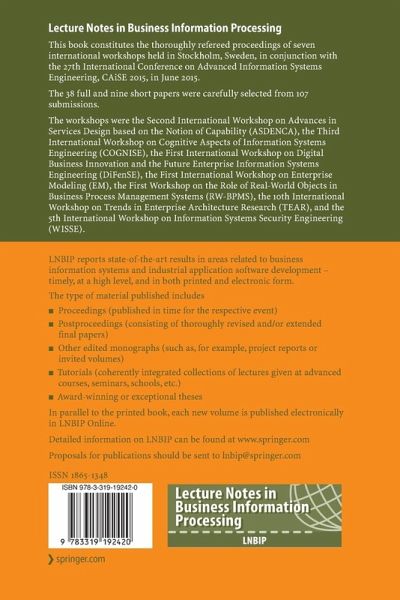 This book constitutes the thoroughly refereed proceedings of seven international workshops held in Stockholm, Sweden, in conjunction with the 27th International Conference on Advanced Information Systems Engineering, CAiSE 2015, in June 2015.