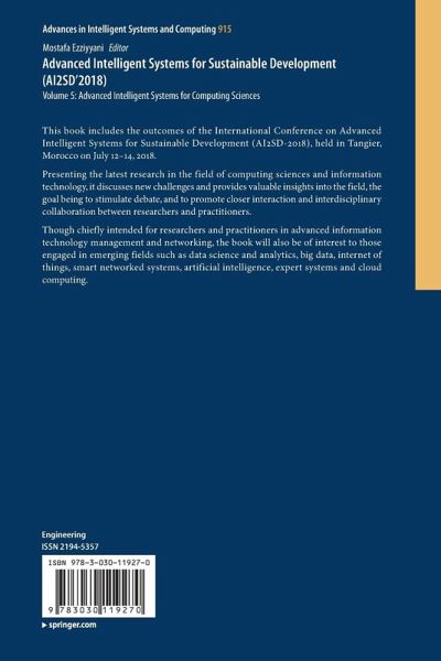 This book includes the outcomes of the International Conference on Advanced Intelligent Systems for Sustainable Development (AI2SD-2018), held in Tangier, Morocco on July 12-14, 2018.