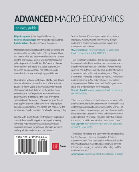 Macroeconomic policy is one of the most important policy domains, and the tools of macroeconomics are among the most valuable for policy makers. Yet there has been, up to now, a wide gulf between the level at which macroeconomics is taught at the undergraduate level and the level at which it is practiced. At the same time, doctoral-level textbooks are usually not targeted at a policy audience, making advanced macroeconomics less accessible to current and aspiring practitioners. This book, born out of the Masters course the authors taught for many years at the Harvard Kennedy School, fills this gap. It introduces the tools of dynamic optimization in the context of economic growth, and then applies them to a wide range of policy questions - ranging from pensions, consumption, investment and finance, to the most recent developments in fiscal and monetary policy. It does so with the requisite rigor, but also with a light touch, and an unyielding focus on their application to policy-making, as befits the authors' own practical experience. Advanced Macroeconomics: An Easy Guide is bound to become a great resource for graduate and advanced undergraduate students, and practitioners alike.