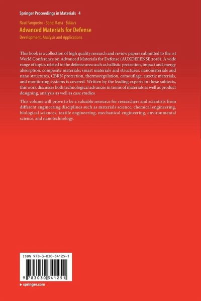 This book is a collection of high quality research and review papers submitted to the 1st World Conference on Advanced Materials for Defense (AUXDEFENSE 2018). A wide range of topics related to the defense area such as ballistic protection, impact and energy absorption, composite materials, smart materials and structures, nanomaterials and nano structures, CBRN protection, thermoregulation, camouflage, auxetic materials, and monitoring systems is covered. Written by the leading experts in these subjects, this work discusses both technological advances in terms of materials as well as product designing, analysis as well as case studies.