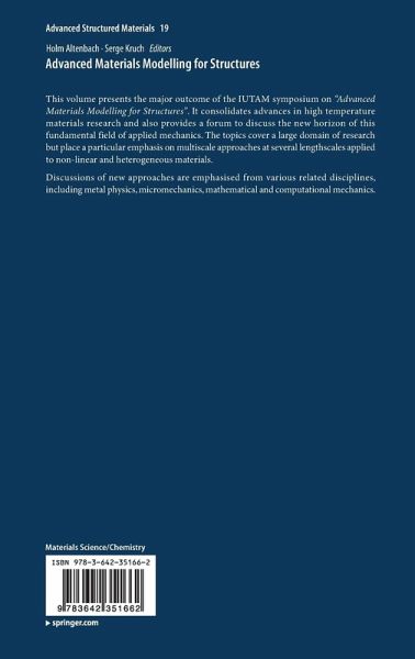 This volume presents the major outcome of the IUTAM symposium on "Advanced Materials Modeling for Structures". It discusses advances in high temperature materials research, and also to provides a discussion the new horizon of this fundamental field of applied mechanics. The topics cover a large domain of research but place a particular emphasis on multiscale approaches at several length scales applied to non linear and heterogeneous materials. Discussions of new approaches are emphasised from various related disciplines, including metal physics, micromechanics, mathematical and computational mechanics.