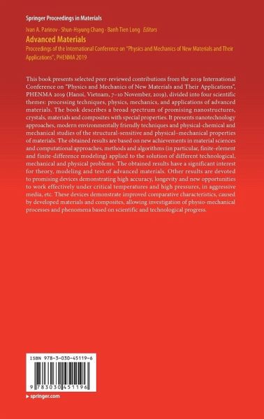 This book presents selected peer-reviewed contributions from the 2019 International Conference on "Physics and Mechanics of New Materials and Their Applications", PHENMA 2019 (Hanoi, Vietnam, 7-10 November, 2019), divided into four scientific themes: processing techniques, physics, mechanics, and applications of advanced materials. The book describes a broad spectrum of promising nanostructures, crystals, materials and composites with special properties. It presents nanotechnology approaches, modern environmentally friendly techniques and physical-chemical and mechanical studies of the structural-sensitive and physical-mechanical properties of materials. The obtained results are based on new achievements in material sciences and computational approaches, methods and algorithms (in particular, finite-element and finite-difference modeling) applied to the solution of different technological, mechanical and physical problems. The obtained results have a significant interest fortheory, modeling and test of advanced materials. Other results are devoted to promising devices demonstrating high accuracy, longevity and new opportunities to work effectively under critical temperatures and high pressures, in aggressive media, etc. These devices demonstrate improved comparative characteristics, caused by developed materials and composites, allowing investigation of physio-mechanical processes and phenomena based on scientific and technological progress.
