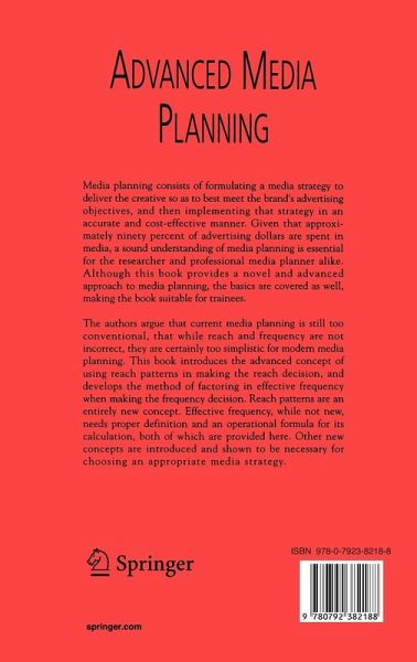 Media planning consists of formulating a media strategy to deliver the creative so as to best meet the brand's advertising objectives, and then implementing that strategy in an accurate and cost-effective manner. Given that approximately ninety percent of advertising dollars are spent in media, a sound understanding of media planning is essential for the researcher and professional media planner alike. Although this book provides a novel and advanced approach to media planning, the basics are covered as well, making the book suitable for trainees.