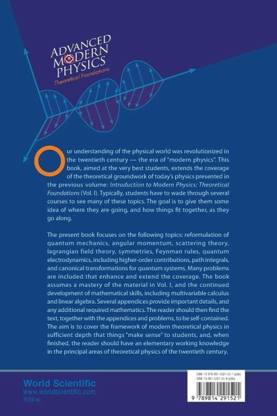 Our understanding of the physical world was revolutionized in the twentieth century the era of "modern physics''. This book, aimed at the very best students, extends the coverage of the theoretical groundwork of today's physics presented in the previous volume: Introduction to Modern Physics: Theoretical Foundations (Vol. I). Typically, students have to wade through several courses to see many of these topics. The goal is to give them some idea of where they are going, and how things fit together, as they go along. The present book focuses on the following topics: reformulation of quantum mechanics, angular momentum, scattering theory, lagrangian field theory, symmetries, Feynman rules, quantum electrodynamics, including higher-order contributions, path integrals, and canonical transformations for quantum systems. Many problems are included that enhance and extend the coverage. The book assumes a mastery of the material in Vol. I, and the continued development of mathematical skills, including multivariable calculus and linear algebra. Several appendices provide important details, and any additional required mathematics. The reader should then find the text, together with the appendices and problems, to be self-contained. The aim is to cover the framework of modern theoretical physics in sufficient depth that things "make sense" to students, and, when finished, the reader should have an elementary working knowledge in the principal areas of theoretical physics of the twentieth century.