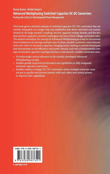 This book gives a detailed analysis of switched-capacitor DC-DC converters that are entirely integrated on a single chip and establishes that these converters are mainly limited by the large parasitic coupling, the low capacitor energy density, and the fact that switched-capacitor converter topologies only have a fixed voltage conversion ratio. The authors introduce the concept of Advanced Multiphasing as a way to circumvent these limitations by having multiple out-of-phase parallel converter cores interact with each other to minimize capacitor charging losses, leading to several techniques that demonstrate record efficiency and power-density, and even a fundamentally new type of switched-capacitor topology that has a continuously-scalable conversion ratio.