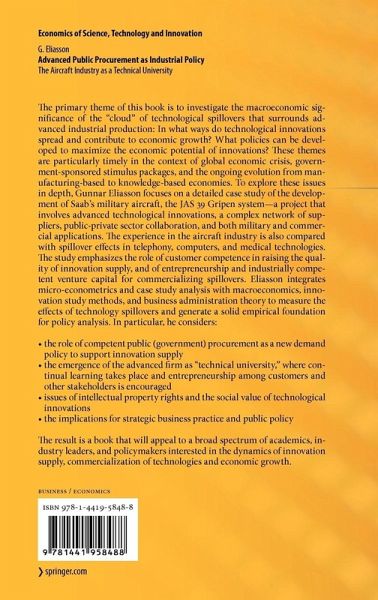 On the Cloud of Technology that Surrounds Advanced Production: A Summary of Results.- The Art of Defining, Pricing, and Marketing Advanced Multidimensional Products that Spill Technology.- Spillovers and Innovative Technology Supply: A Literature Survey.- Capturing the Direct and the Serendipitous Spillovers: The Case of Sweden's Military Aircraft Industry.- Looking into the Future on JAS Gripen Spillovers.- Saab in South Africa: Technology Transfer to an Industrializing Economy.- The European Policy Perspective.- Private and Social Spillover Benefits from Advanced Procurement: Defining and Estimating the Spillover Multiplier.- Advanced Purchasing as Industrial Policy: On the Advanced Firm as a Technical University.