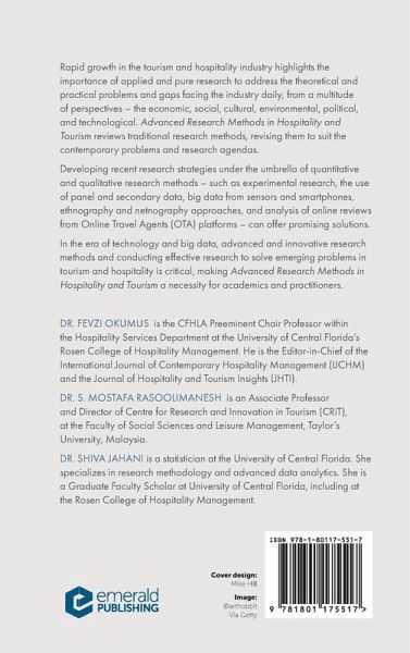 In the era of technology and big data, advanced and innovative research methods and conducting effective research to solve emerging problems in tourism and hospitality is critical, making Advanced Research Methods in? Hospitality and Tourism a necessity for academics and practitioners.