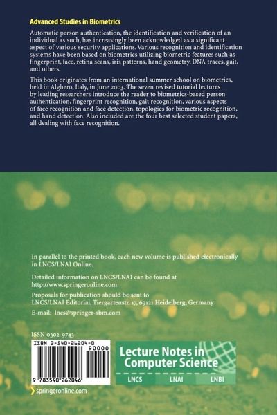 This book originates from an international summer school on biometrics, held in Alghero, Italy, in June 2003. The seven revised tutorial lectures by leading researchers introduce the reader to biometrics-based person authentication, fingerprint recognition, gait recognition, various aspects of face recognition and face detection, topologies for biometric recognition, and hand detection. Also included are the four best selected student papers, all dealing with face recognition.