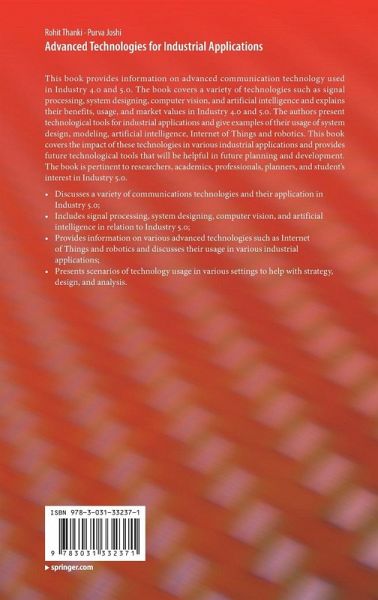 This book provides information on advanced communication technology used in Industry 4.0 and 5.0. The book covers a variety of technologies such as signal processing, system designing, computer vision, and artificial intelligence and explains their benefits, usage, and market values in Industry 4.0 and 5.0. The authors present technological tools for industrial applications and give examples of their usage of system design, modeling, artificial intelligence, internet of things and robotics. This book covers the impact of these technologies in various industrial applications and provides future technological tools that will be helpful in future planning and development. The book is pertinent to researchers, academics, professionals, planners, and student's interest in Industry 5.0.