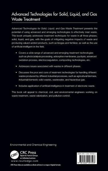 This book presents the potential of using advanced and emerging technologies to effectively treat waste. It uniquely addresses treatment techniques for waste in all three phases, solid, liquid, and gas, with the goals of mitigating negative impacts of waste and producing valued-added products, such as biogas and fertilizer.