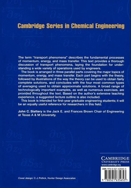 Text on momentum, energy, and mass transfer for graduate engineering students.