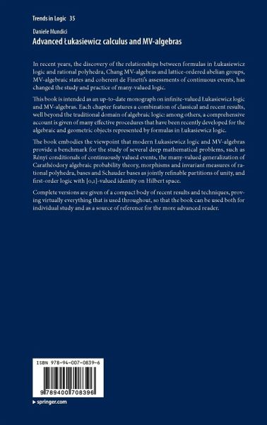 From the reviews: "The book is recommended for professional researchers and advanced students with an appropriate mathematical background. The book covers most of the recent developments in Lukasiewicz infinite-valued calculus and MV-theory. ... The presentation is clearly structured and self-contained. The book consists of twenty chapters and two appendices, and a suitable bibliography is offered at the end of each chapter. Some of the chapters can be read independently from the others." (Manuela Busaniche, Mathematical Reviews, Issue 2012 i) "The author of this book is one of the leading scientists in the field of MV-algebras, and in this work he presents his recent results, collecting them in a monograph that every scholar interested in many-valued logic should consult for his studies. The book is intended as a text for a second course on infinite-valued Lukasiewicz logic ... . Each chapter focuses on a specific topic and chapters are almost independent from each other." (Brunella Gerla, Zentralblatt MATH, Vol. 1235, 2012)