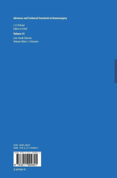 S. Price: Advances in imaging low-grade gliomas - M. J. Riemenschneider, G. Riefenberger: Molecular neuropathology of low-grade gliomas and its clinical impact - I . R. Whittle: What is the place of conservative management for adult supratentorial low- grade glioma - D. Kurzwelly, U. Herrlinger, M. Simon: Seizures in patients with low- grade gliomas -- incidence, pathogenesis, surgical management, and pharmacotherapy - L. Bello et al: Present day's standards in microsurgery of low-grade gliomas - B. Baumert and R. Stupp: Is there a place for radiotherapy in low-grade gliomas? - F. W. Kreth et al: The place of interstitial brachytherapy and radiosurgery for low-grade gliomas - M. Klein: Health- related quality of life aspects in patients with low-grade glioma.