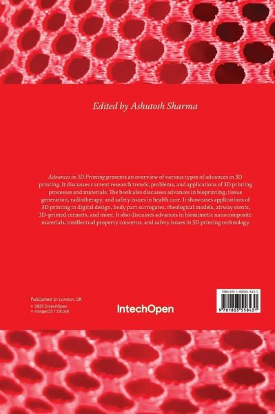 Advances in 3D Printing presents an overview of various types of advances in 3D printing. It discusses current research trends, problems, and applications of 3D printing processes and materials. The book also discusses advances in bioprinting, tissue generation, radiotherapy, and safety issues in health care. It showcases applications of 3D printing in digital design, body part surrogates, rheological models, airway stents, 3D-printed cermets, and more. It also discusses advances in biomimetic nanocomposite materials, intellectual property concerns, and safety issues in 3D printing technology.
