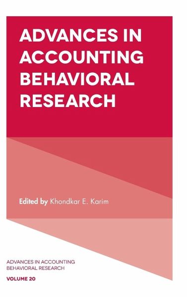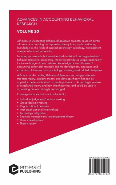 Advances in Accounting Behavioral Research addresses a wide range of issues that affect the users, preparers, and assurers of accounting information. Volume 20 exemplifies this focus by including research on emerging theory, methods, and applications towards behavioral research in accounting and audit.