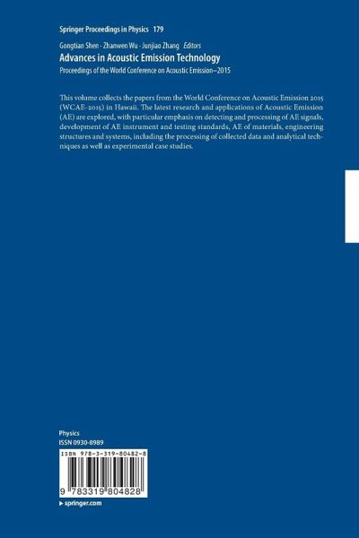 This volume collects the papers from the World Conference on Acoustic Emission 2015 (WCAE-2015) in Hawaii. The latest research and applications of Acoustic Emission (AE) are explored, with particular emphasis on detecting and processing of AE signals, development of AE instrument and testing standards, AE of materials, engineering structures and systems, including the processing of collected data and analytical techniques as well as experimental case studies.