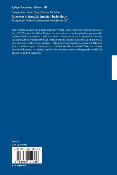 This volume collects the papers from the World Conference on Acoustic Emission 2017 (WCAE-2017) in Xi'an, China. The latest research and applications of acoustic emission (AE) are explored, with a particular emphasis on detecting and processing AE signals, the development of AE instrument and testing standards, AE of materials, engineering structures and systems, including the processing of collected data and analytical techniques. Numerous case studies are also included. This proceedings volume will appeal to students, professors and researchers working in these fields as physicists and/or engineers.