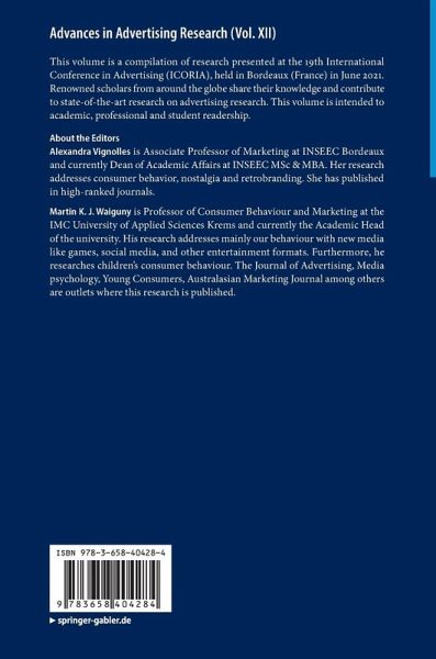This volume is a compilation of research presented at the 19th International Conference in Advertising (ICORIA), held in Bordeaux (France) in June 2021. Renowned scholars from around the globe share their knowledge and contribute to state-of-the-art research on advertising research. This volume is intended to academic, professional and student readership.