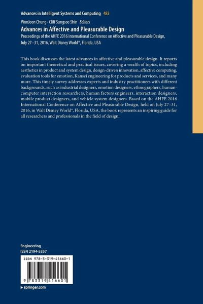 This book discusses the latest advances in affective and pleasurable design. It reports on important theoretical and practical issues, covering a wealth of topics, including aesthetics in product and system design, design-driven innovation, affective computing, evaluation tools for emotion, Kansei engineering for products and services, and many more. This timely survey addresses experts and industry practitioners with different backgrounds, such as industrial designers, emotion designers, ethnographers, human-computer interaction researchers, human factors engineers, interaction designers, mobile product designers, and vehicle system designers. Based on the AHFE 2016 International Conference on Affective and Pleasurable Design, held on July 27-31, 2016, in Walt Disney World®, Florida, USA, the book represents an inspiring guide for all researchers and professionals in the field of design.
