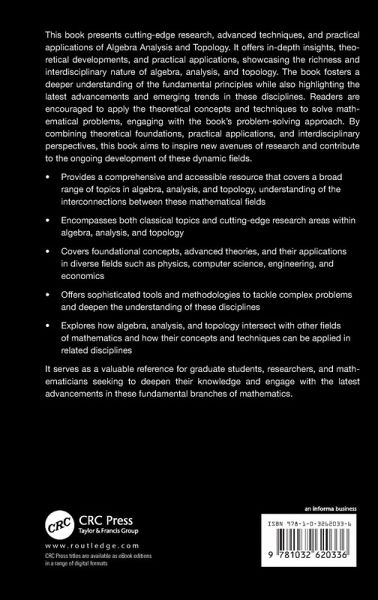 This book presents cutting-edge research, advanced techniques, and practical applications of Algebra Analysis and Topology. It offers in-depth insights, theoretical developments, and practical applications, showcasing the richness and interdisciplinary nature of algebra, analysis, and topology.