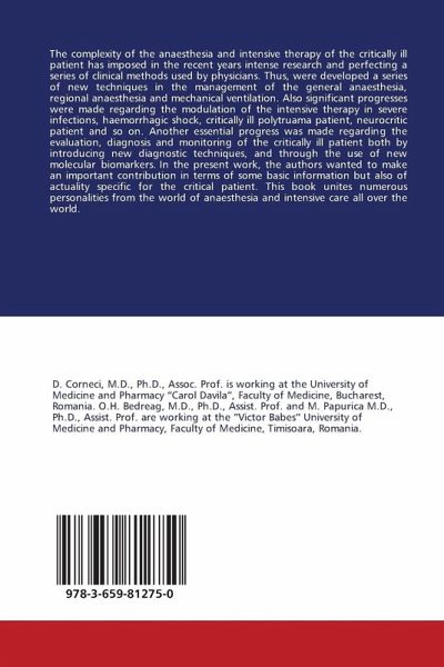 The complexity of the anaesthesia and intensive therapy of the critically ill patient has imposed in the recent years intense research and perfecting a series of clinical methods used by physicians. Thus, were developed a series of new techniques in the management of the general anaesthesia, regional anaesthesia and mechanical ventilation. Also significant progresses were made regarding the modulation of the intensive therapy in severe infections, haemorrhagic shock, critically ill polytruama patient, neurocritic patient and so on. Another essential progress was made regarding the evaluation, diagnosis and monitoring of the critically ill patient both by introducing new diagnostic techniques, and through the use of new molecular biomarkers. In the present work, the authors wanted to make an important contribution in terms of some basic information but also of actuality specific for the critical patient. This book unites numerous personalities from the world of anaesthesia and intensive care all over the world.