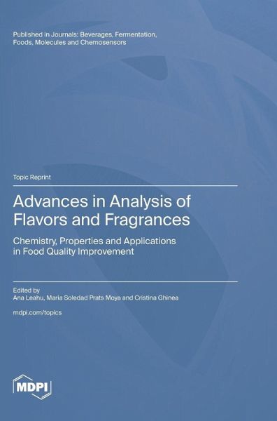 "Advances in Analysis of Flavors and Fragrances: Chemistry, Properties and Applications in Food Quality Improvement" compiles research and reviews in Foods, Fermentation, Molecules, Beverages, and Chemosensors journals, highlighting diverse studies on the latest findings on flavor compounds. The main subjects covered in this reprint were: investigation of flavor components in wine (Grenache, Huangjiu), liquor (Baijiu, Luzhou-flavor liquor, Hunan Light-Flavor Baijiu), and in plum brandies; the determination of taste-specific compounds in the apple juice and cider; the investigation of the content and composition of Jerez vinegars and their authentication; the determination of volatile organic compounds in strawberry juice and wine; the establishment of the grain composition and volatile profile of Irish whiskey; the determination of volatile compounds in sun-dried green tea, raw Pu-erh tea, and baked green tea; E-noses measurement of green coffee beans; the influence of C. zanthorrhiza addition to Liberica coffee; the exploration of the characteristic aroma components of traditional fermented koumiss, of Hurood cheese; the comparison of cow, donkey, camel, and horse milk powder; the investigation of changes in volatile flavor compounds in the enzymatic hydrolysates of chicken carcasses; the determination of aroma profile for apricot and pear cultivars, and peanut varieties; and the characterization of key aroma compounds of fermented soybeans, of soy sauce and others products. This reprint is highly recommended for researchers, students, and industry professionals, as it offers new insights into the "world of food flavors".