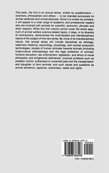 This book, the first in an annual series, written by academicians scientists, philosophers and others-is not intended exclusively for an imal welfarists and conservationists. Since it is written_ by scholars, it will appeal to a wide range of academic and professional readers who are involved with animals for scientific, economic, altruistic, and other reasons. While this first volume cannot cover the entire spectrum of animal welfare science-related topics, it does, in its diversity of con tributions, demonstrate the multi-faceted and interdisciplinary nature of the subject of this new series. Indeed, animals are as much an integral part of society as we are dependent upon them. The many interfaces between us and the billions of animals under our dominion (as well as the environment upon which the welfare of human and non-human animals alike is ultimately de pendent) have their separate features: trapping and wildlife manage ment; laboratory animal research; whaling and fishing;veterinary practice; agriculture and farm animal husbandry; horse racing and the ownership of animal companions; the propagation of captive wildlife and their preservation in the wild; the use of animals as companions and for the purposes of vicarious entertainment.