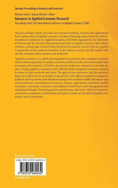 This proceedings volume aims to provide new research methods, theories and applications from various areas of applied economic research. Featuring papers from the 2016 International Conference on Applied Economics (ICOAE) organized by the University of Nicosia and the Western Macedonia University of Applied Sciences, this volume presents cutting edge research from all areas of economic science that use applied econometrics as the method of analysis. It also features country specific studies with specific economic policy analyses and proposals.