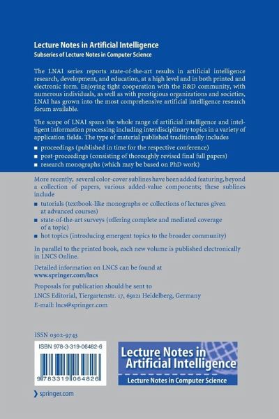 This book constitutes the refereed proceedings of the 27th Canadian Conference on Artificial Intelligence, Canadian AI 2014, held in Montréal, QC, Canada, in May 2014. The 22 regular papers and 18 short papers presented together with 3 invited talks were carefully reviewed and selected from 94 submissions. The papers cover a variety of topics within AI, such as: agent systems; AI applications; automated reasoning; bioinformatics and BioNLP; case-based reasoning; cognitive models; constraint satisfaction; data mining; E-commerce; evolutionary computation; games; information retrieval; knowledge representation; machine learning; multi-media processing; natural language processing; neural nets; planning; privacy-preserving data mining; robotics; search; smart graphics; uncertainty; user modeling; web applications.