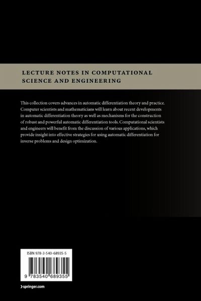 The Fifth International Conference on Automatic Differentiation held from August 11 to 15, 2008 in Bonn, Germany, is the most recent one in a series that began in Breckenridge, USA, in 1991 and continued in Santa Fe, USA, in 1996, Nice, France, in 2000 and Chicago, USA, in 2004. The 31 papers included in these proceedings re?ect the state of the art in automatic differentiation (AD) with respect to theory, applications, and tool development. Overall, 53 authors from institutions in 9 countries contributed, demonstrating the worldwide acceptance of AD technology in computational science. Recently it was shown that the problem underlying AD is indeed NP-hard, f- mally proving the inherently challenging nature of this technology. So, most likely, no deterministic "silver bullet" polynomial algorithm can be devised that delivers optimum performance for general codes. In this context, the exploitation of doma- speci?c structural information is a driving issue in advancing practical ADtool and algorithm development. This trend is prominently re?ected in many of the pub- cations in this volume, not only in a better understanding of the interplay of AD and certain mathematical paradigms, but in particular in the use of hierarchical AD approaches that judiciously employ general AD techniques in application-speci?c - gorithmic harnesses. In this context, the understanding of structures such as sparsity of derivatives, or generalizations of this concept like scarcity, plays a critical role, in particular for higher derivative computations.