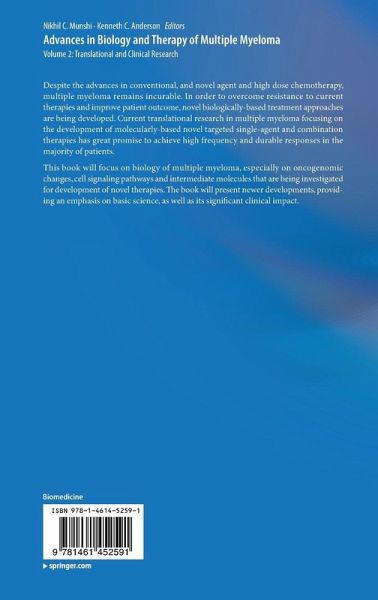 Despite the advances in conventional, novel agent and high dose chemotherapy multiple myeloma (MM) remains incurable. In order to overcome resistance to current therapies and improve patient outcome, novel biologically-based treatment approaches are being developed. Current translational research in MM focusing on the development of molecularly-based combination therapies has great promise to achieve high frequency and durable responses in the majority of patients. Two major advances are making this goal possible. First, recent advances in genomics and proteomics in MM have allowed for…mehr