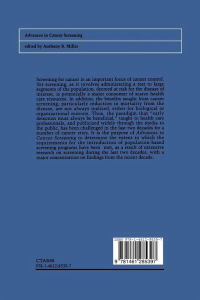 Screening for cancer is an important focus of cancer control. Yet screening, as it involves administering a test to large segments of the population deemed to be at risk for the disease of interest, is potentially a major consumer of scarce health care resources. In addition, the benefits sought from cancer screening, particularly reduction in mortality from the disease, are not always realized, either for biological or organizational reasons. Thus, the paradigm that `early detection must always be beneficial', taught to health care professionals, and publicized widely through the media to the public, has been challenged in the last two decades for a number of cancer sites. It is the purpose of Advances in Cancer Screening to determine the extent to which the requirements for the introduction of population-based screening programs have been met, as a result of extensive research on screening during the last two decades, with a major concentration on findings from the recent decade.
