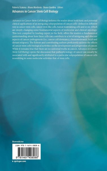 Preface.- Cancer Stem cell. A revisitation of "anaplasia" concept.- Stem cells and cancer stem cells- new insights.- Molecular biology of cancer stem cells.- Biomarkers of cancer stem cells.- Cancer stem cell and the microenvironment.- Leukemia stem cells.- Cancer stem cell and the central nervous system.- Cancer stem cells and glioblastoma multiforme. Pathophysiological and clinical aspects.- Breast cancer stem cells.- Colon cancer stem cells.- Liver Tumor-Initiating Cells / Cancer Stem Cells: Past Studies, Current Status and Future Perspectives.- Pancreatic cancer stem cells.- Cancer stem cell and renal carcinoma.- Cancer stem cells. Proteomic approaches for new potential diagnostic and prognostic biomarkers.- Cancer stem cells. An innovative therapeutic approach.- Cancer stem cell and ATP binding cassette. Which role in chemoresistance?.- Stem cell and cancer stem cells. Biological and clinical interrelationships.- Cancer stem cell and antitumor immunity.- Index