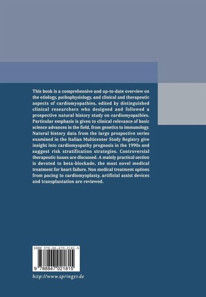 Introduction: II Florence Meeting on Advances in Cardiomyopathies.- The Classification of Cardiomyopathies.- Hypertrophic Cardiomyopathy.- The Clinical Significance of Genetic Testing in Familial Hypertrophic Cardiomyopathy.- The Italian Multicentric Study on Hypertrophic Cardiomyopathy: I. Natural History and Clinical Course of Unselected Patients.- The Italian Multicentric Study on Hypertrophic Cardiomyopathy: II. Prognostic Assessment in Symptomatic Patients.- Detection and Clinical Consequences of Myocardial Ischemia and Reduced Coronary Reserve.- Identification and Management of High Risk Patients with Hypertrophic Cardiomyopathy.- Hypertrophic Cardiomyopathy and Sudden Death in the Young: a Pathologist's View.- The Clinicopathologic Spectrum of Hypertrophic Cardiomiopathy. The Experience of the Italian Heart Transplant Program.- Medical Treatment Options in Hypertrophic Cardiomyopathy.- DDD Pacing in Hypertrophic Cardiomyopathy: State of the Art.- Indications and Outcome of Cardiac Surgery for Severely Symptomatic Patients with Hypertrophic Obstructive Cardiomyopathy.- Dilated Cardiomyopathy: Etiology, Pathophysiology and Clinical Data.- Genetic Basis of Dilated Cardiomyopathy.- Virus Infection in Cardiomyopathies: Brief Overview, Recent Advances.- Organ-Specific Cardiac Autoantibodies in Dilated Cardiomyopathy: Pathogenetic Implications.- Inflammatory Cardiomyopathy: Diagnostic and Therapeutical Options.- Mitochondrial DNA Mutations and Cardiomyopathies.- Pathophysiologic Role of Coronary Microcirculatory Impairment in Dilated Cardiomyopathy.- Myocardial Catecholamines and Inotropic Response in Heart Muscle Disease.- Molecular Biology of Heart Failure.- Dilated Cardiomyopathy: Does Etiological Heterogeneity Portend Clinical Heterogeneity?.- Recent Advances in Etiopathogenesis of Dilated Cardiomyopathy: Which Relevance for the Clinical Cardiologist?.- The Italian Multicentric Study: Natural History of Dilated Cardiomyopathy.- Mildly Dilated Cardiomyopathy.- Dilated Cardiomyopathy: Treatment.- Immunosuppressive Treatment for Inflammatory Dilated Cardiomyopathy (Myocarditis).- Prevention of Sudden Death in Patients with Dilated Cardiomyopathy.- Medical Treatment of Heart Failure: Problems in Dilated Cardiomyopathy.- Treatment of Dilated Cardiomyopathies with ?-adrenergic Blocking Agents.- The role of ?-Blockers in the Management of Heart Failure: Results of Controlled Trials.- Controversial Issues on ?-Blocker Treatment: Has Metoprolol an Additive Effect to Conventional Medical Treatment in Heart Failure Due to Dilated Cardiomyopathy?.- ?-Blockers for Heart Failure: Practical Issues.- DDD Pacing in Dilated Cardiomyopathy.- End-Stage Heart Failure and Timing of Heart Transplantation.- Cardiomyoplasty: Surgical Therapy for Ischemic and Idiopathic Dilated Cardiomyopathies.- Left Ventricular Assist Device as Bridge to Transplantation.
