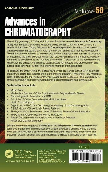 For more than four decades, scientists and researchers have relied on the Advances in Chromatography series for the most up-to-date information on a wide range of developments in chromatographic methods and applications. For Volume 50, the series editors have invited established, well-known chemists from across the globe to offer cutting-edge reviews on their areas of expertise. The clear presentation of topics and vivid illustrations for which this series has become known makes the material accessible and engaging to analytical, biochemical, organic, polymer, and pharmaceutical chemists at all levels of technical skill.