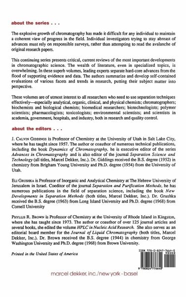 This book provides the most up-to-date information on a wide range of developments in chromatographic methods and applications. It presents timely, cutting-edge reviews in the fields of bio-, analytical, organic, polymer, and pharmaceutical chemistry.