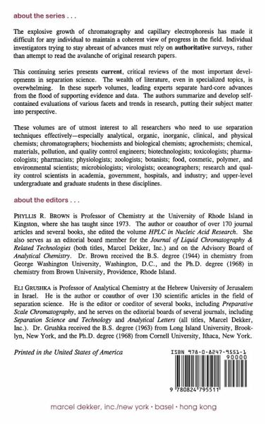 "Volume 36 examines timely subjects such as multilinear regression, canonical correlation, and facor and principal component methods of analysis in the evaluation of retention data matrices, molecular recognition mechanisms in the liquid chromatographic separation of fullerenes, the latest techniques in the use of capillary electrophoresis and mass spectrometry for sequencing antisense oligonucleotides, and more."
