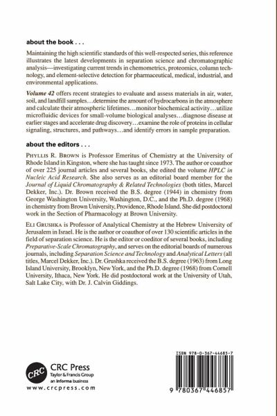 1. Chemometrie Analysis of Comprehensive Two-Dimensional Separations 2. Column Technology for Capillary Electrochromatography 3. Gas Chromatography with Inductively Coupled Plasma Mass Spectrometric Detection (GP-ICP MS) 4. GC-MS Analysis of Halocarbons in the Environment 5. Microfluidics for Ultrasmall-Volume Biological Analysis 6. Recent Trends in Proteome Analysis 7. Improving Our Understanding of Reversed-Phase Separations for the 21st Century 8. Clinical Applications of High-Performance Affinity Chromatography