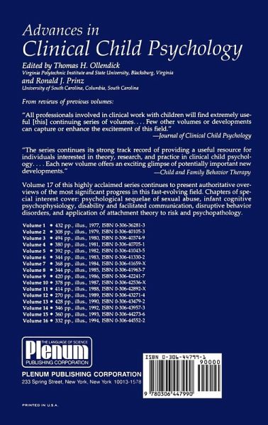 `The series continues its strong track record of providing a useful resource for individuals interested in theory, research, and practice in clinical child psychology....Each new volume offers an exciting glimpse of potentially important new developments.'