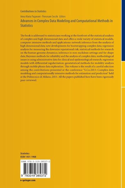 The book is addressed to statisticians working at the forefront of the statistical analysis of complex and high dimensional data and offers a wide variety of statistical models, computer intensive methods and applications: network inference from the analysis of high dimensional data; new developments for bootstrapping complex data; regression analysis for measuring the downsize reputational risk; statistical methods for research on the human genome dynamics; inference in non-euclidean settings and for shape data; Bayesian methods for reliability and the analysis of complex data; methodological issues in using administrative data for clinical and epidemiological research; regression models with differential regularization; geostatistical methods for mobility analysis through mobile phone data exploration. This volume is the result of a careful selection among the contributions presented at the conference "S.Co.2013: Complex data modeling and computationally intensive methods for estimation and prediction" held at the Politecnico di Milano, 2013. All the papers published here have been rigorously peer-reviewed.