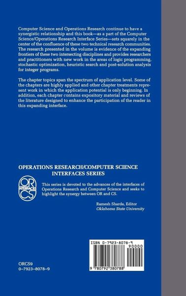 Computer Science and Operations Research continue to have a synergistic relationship and this book - as a part of the Operations Research and Computer Science Interface Series - sits squarely in the center of the confluence of these two technical research communities. The research presented in the volume is evidence of the expanding frontiers of these two intersecting disciplines and provides researchers and practitioners with new work in the areas of logic programming, stochastic optimization, heuristic search and post-solution analysis for integer programs.