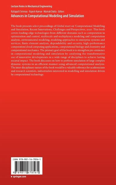 The book presents select proceedings of Global meet on 'Computational Modelling and Simulation, Recent Innovations, Challenges and Perspectives, 2020. This book covers leading-edge technologies from different domains such as computation in optimization and control, multiscale and multiphysics modeling and computation analysis, environmental modeling, modeling approaches to enterprise systems and services, finite element analysis, dependability and security, high-performance computation/cloud computing applications, computational biology and chemistry and computational mechanics. The primary goal of this book is to strengthen pre-eminence in computational modeling and simulation by catalyzing the transformative use of innovative developments in a wide range of disciplines to achieve lasting societal impact. The book discusses on how to perform simulation of large complex dynamic systems in an efficient manner using advanced computational analysis. The inter-disciplinary nature ofthe book would be a valuable reference for academicians and research scientists, industrialists interested in modelling and simulation driven by computational technology.